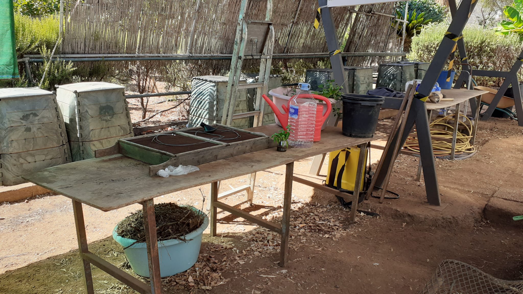 Gracias a los tipos de compost y al trabajo que hacen los jardineros en el bosque de la asociación Domitila Hernandez, tenemos numerosos ejemplos en vivo para poder enseñar a hacer compost casero en este taller. Con esta idea se desarrolló un taller teórico con muestra de ejemplos prácticos in situ en el propio bosque reproductivo del centro de Domitila. Se ha podido enseñar a los participantes las distintas fases del proceso del compost en las composteras de la finca, así como pudimos mostrar ejemplos de acolchados en la huerta y enseñar las dos lombriceras ubicadas en el centro. Por último pudimos enseñar otro tipo de formación de compost basado en material vegetal proveniente de las podas y del desbroce y para qué se utiliza. El curso enseña a cómo generar tu propio compost en tu huerto, cómo crear tu lombricera, sus ubicaciones más adecuadas, los materiales que pueden echarle y los que no, el porcentaje del tipo de material, qué lombrices se utilizan más, la forma y el momento de echar el compost ya preparado en tu suelo.